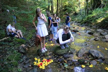 Exakt 759 Enten gingen am Sonntag, 17. September 2023 im Schmidbach/Stubenberg-Hinterbrühl auf ihre mehrere hundert Meter abenteuerlich-nasse Reise im Rahmen des Events der SPÖ Stubenberg. Jede einzelne der gelben und roten Enten hatte einen Paten/eine Patin, die mit dem Startgeld von EUR 2,50 darauf setzten, dass "Ihre" Ente als eine der 50 ersten ins Ziel kommt. Denn für dieses siegreiche halbe Hundert gab es attraktive Geld- und Sach-Preise von großzügigen lokalen Sponsoren. Die sympathische Veranstaltung war wie zu erwarten natürlich ein unwiderstehlicher Kindermagnet, so wie das Rahmenprogramm mit Hüpfburg, Wurstbraterei und Wiesenausschank. Am Ende waren dann nicht nur sämtliche Enten wohlbehalten im Ziel angelangt, sondern auch alle Gewinner:innen ermittelt. Uns wurde als Benefiz-Erlös aus der Aktion die Summe von EUR 1.165,- übergeben, die sich aus einem Euro pro Ente, Spenden der Besucher:innen und einer Spende der SPÖ Stubenberg zusammensetzt. Wir sagen DANKE!