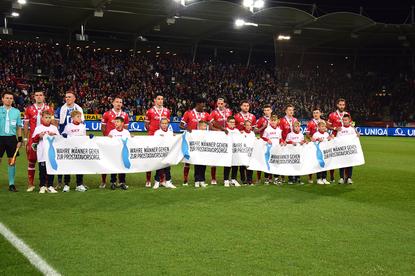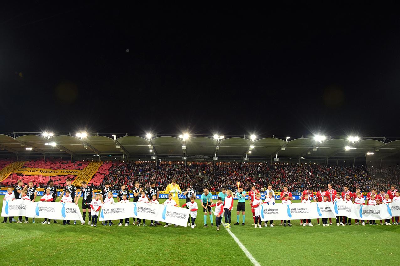 Die Spieler beider Mannschaften sowie die Schiedsrichter liefen mit der lockeren blauen zum Spiel ein und entrollten im Rahmen der Aufstellung zu Beginn des Spiels auch entsprechende Banner mit dem Claim „Wahre Männer gehen zur Prostatavorsorge“.