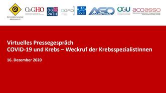 „Die COVID-19-Pandemie ist nicht nur eine der größten Gesundheitskrisen des letzten Jahrhunderts, sie zieht auch massive Kollateralschäden nach sich. Nicht zuletzt bei Menschen mit einer Krebserkrankung“, konstatiert Univ.-Prof. Dr. Paul Sevelda, Präsident der Österreichischen Krebshilfe. „Erste internationale Untersuchungen bestätigen das ganz klar. KrebspatientInnen haben ein erhöhtes Risiko, eine COVID-19-Erkrankung schlecht zu überstehen. Vor allem aber können die COVID-19-bedingten Einschränkungen des sozialen Lebens negative Effekte bei KrebspatientInnen generieren. Zusätzlich erhöhen die verspäteten Diagnosen und der reduzierte Zugang zu Therapien die Mortalität der KrebspatientInnen.“ „Diese Risiken dürfen nicht unbeobachtet bleiben“, fasst Prim. Univ.-Prof. Dr. Wolfgang Hilbe, Präsident der Österreichischen Gesellschaft für Hämatologie & Medizinische Onkologie (OeGHO), zusammen.