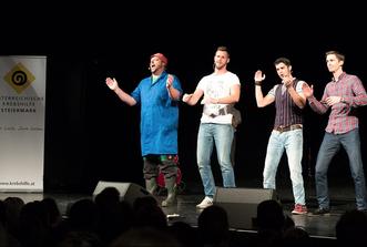 Hier stellte sich ein echtes Allstar Team des jungen Kabaretts in den Dienst der guten Sache. Der stadionrockende Tiki-Taka-König Paul Pizzera, das kabarettpreisgekrönte Grunge-Goldkehlchen Otto Jaus, das hammerschwingende Volkszornventil Petutschnig Hons und die sprachgewandte Rampensau aus Leidenschaft Clemens Maria Schreiner gaben gemeinsam Gas.