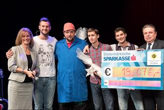 Alle Künstler sowie das Orpheum-Personal (Technik, Security, Gastro...) verzichteten an diesem Abend auf ihre Gage und konnten so schließlich an den Präsidenten der Krebshilfe Steiermark, Dr. Martin Hoff, einen Spendenscheck über unglaubliche € 19.076,- mit sichtlichem Stolz und Freude übergeben. Der gesamte Erlös kommt übrigens dem Projekt "Mama/Papa hat Krebs" zu Gute, mit dem Kindern von KrebspatientInnen kostenlos psychologisch betreut werden.