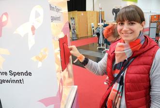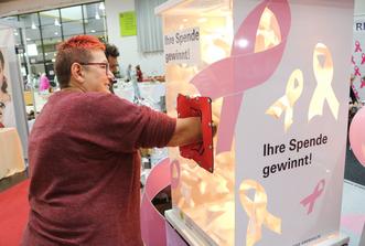 Gelegenheit zur Solidarität mit steirischen BrustkrebspatientInnen bot auch heuer wieder die Glücksäule mit tollen Preisen.