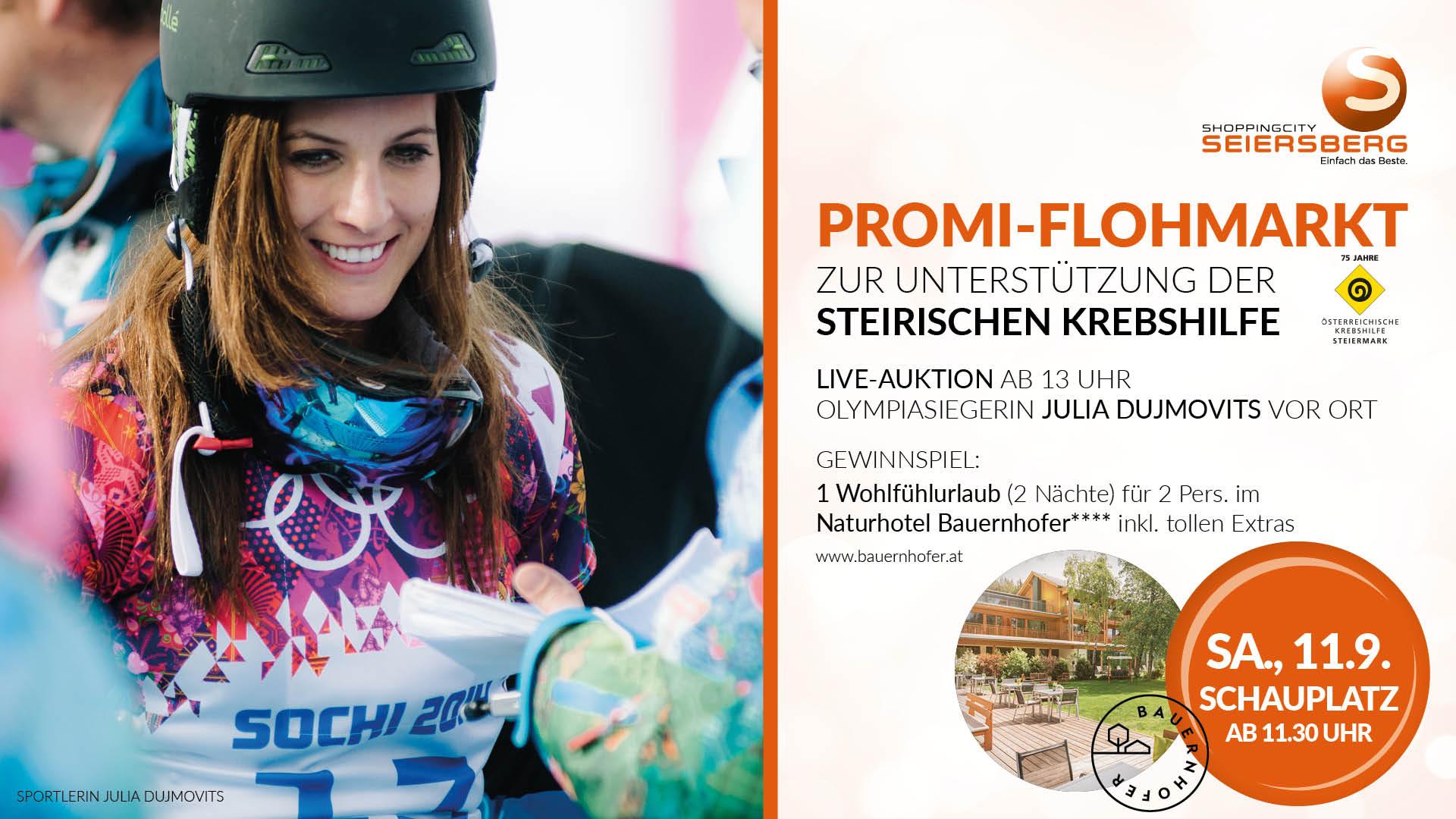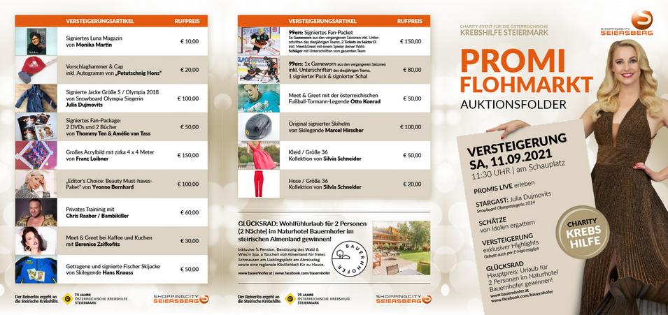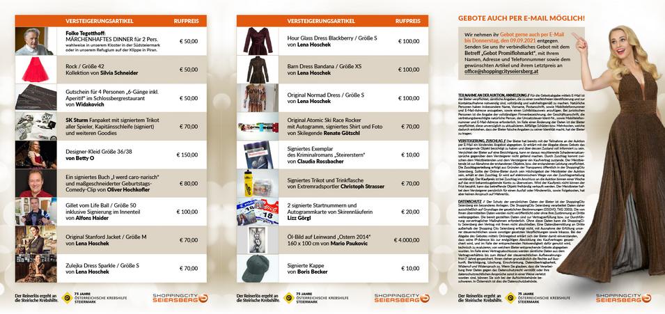 Am Samstag den 11. September wurden wieder Schätze von Promis beim Promiflohmarkt in der ShoppingCity Seiersberg verkauft und die besten Stücke versteigert. Alles zu Gunsten der Steirischen Krebshilfe.