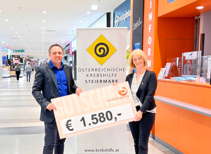 Denn alle, die mitspielten, warfen gleichzeitig auch eine Spende für die Krebshilfe Steiermark in die Spendenbox vor Ort und unterstützten damit die Arbeit der Krebshilfe. Die ShoppingCity Seiersberg verdoppelte diese Spenden, sodass am Ende dieser beiden buten Aktionstage eine Spendensumme von 1.580 Euro an die Krebshilfe Steiermark üergeben werden konnt.