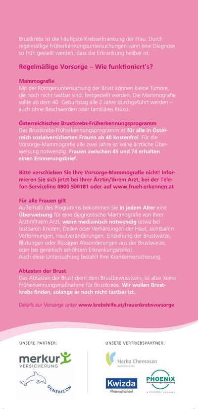 Dieses besondere Engagement der steirischen Apotheken ist ein bedeutender Baustein der Brustkrebsprävention in der Steiermark. Apotheken sind für viele Menschen zentrale Gesundheits- und Vertrauenspartner – und genau diese niederschwellige, persönliche Begegnung bietet eine wertvolle Gelegenheit, Frauen im ganzen Bundesland über die Mammografie als wichtigste Maßnahme der Brustkrebsfrüherkennung zu informieren und sie an die regelmäßige Teilnahme zu erinnern.