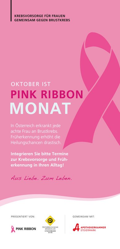 Zum dritten Mal in Folge unterstützten die Apothekerkammer Steiermark und zahlreiche steirische Apotheken im Oktober die Pink Ribbon Aktion der Steirischen Krebshilfe.